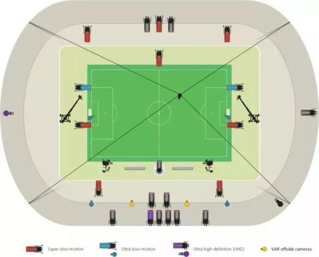 视频助理裁判团队可以使用33个电视转播信号的机位,其中八个具有超级慢动作(super slow-motion)功能,六个具有极致慢动作(ultra slow-motion)功能