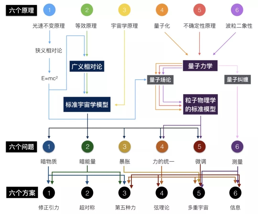 首先,爱因斯坦的广义相对论颠覆了牛顿的引力理论,他将引力视作为时空的扭曲、而不是某种力。接着,普朗克、薛定谔和海森堡等人发展了理解亚原子世界的量子力学。在20世纪中期时,物理学家深刻的意识到在原子的内部还有两种基本力——强核力和弱核力。而到了下半个世纪,物理学家则建立了描述宇宙中已知所有粒子和基本力的标准模型。