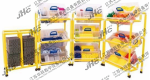 5、一套箱装数量有8件,其中器材箱6件、黄色三层收纳架2个。器材箱尺寸为 长:593mm 宽:406mm 高:231mm;黄色器材收纳架尺寸为 长:680mm 宽:400mm 高:1150mm。收纳架为管状可拆卸组合拼装,并配有带带闸的移动轮,便于移动。