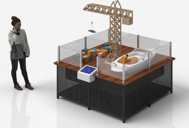展项由吊机机构和控制机构组成,直观的展示了吊机装卸货物的过程。