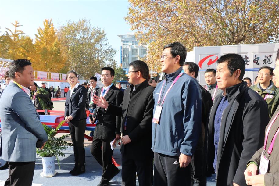 ▲领导一行视察江苏新起点实业有限公司产品展示区