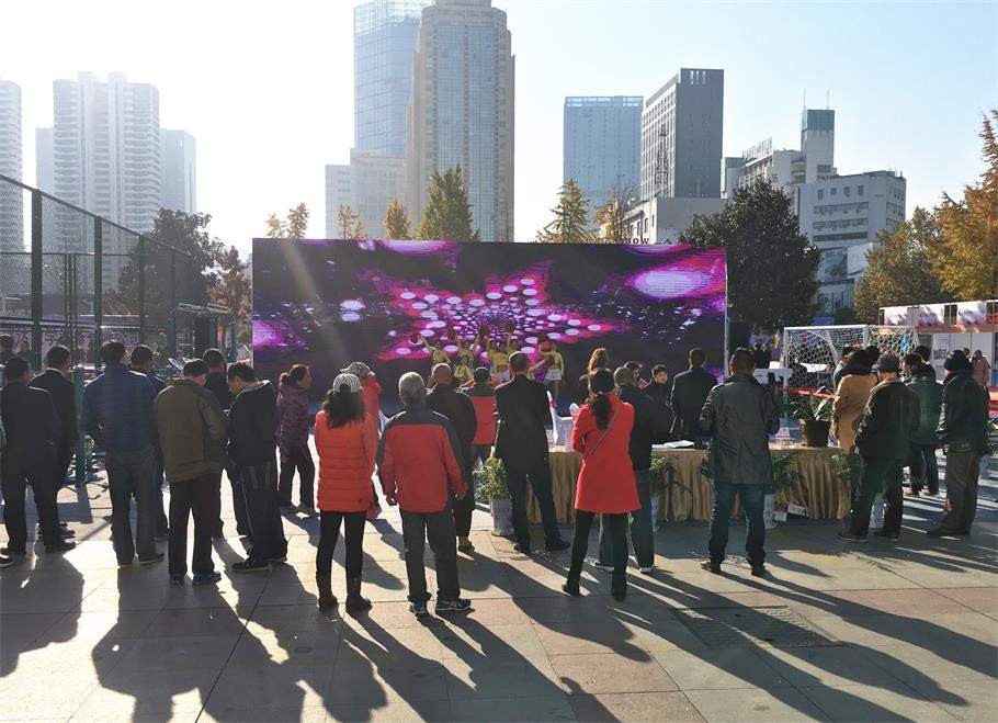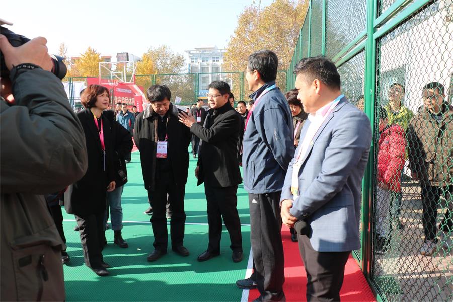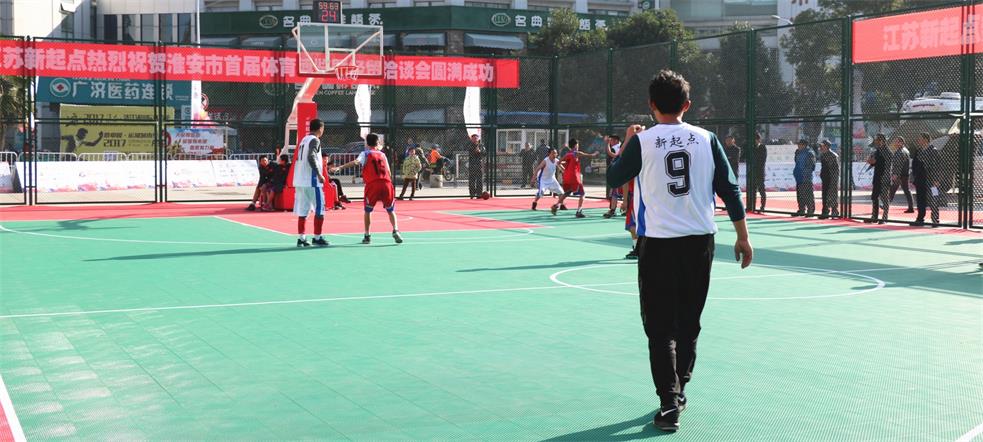 开幕式结束后,市委书记姚晓东,省体育局副局长王志光,市领导李森、周毅、李冰、王红红、仲波等众领导参观了本次活动的主题展览区域,本次展览区域分为室内、室外两大展区。作为本次淮安区体育产业先进代表——江苏新起点实业有限公司,室外展区高达600平方余米,利用其自营生产的笼式围网搭建了笼式多功能篮球场地,大会当天开展了篮球对抗赛,篮球宝贝啦啦操,场面热闹非凡。为深秋的淮安增添了一抹青春活力。