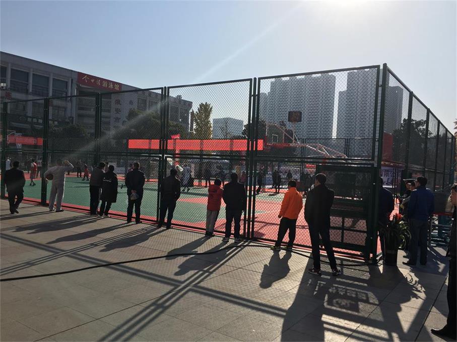 ▲笼式多功能场内赛事激烈,场外人潮聚集