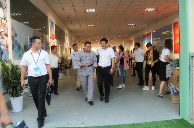 2019年9月16日上午风和日暄,大地如铺装了一层金毯。为庆祝中华人民共和国成立70周年,发扬和继承周恩来总理的革命精神,来自全国29省市、120余名红军小学的校长及领导、革命老区43所优秀周恩来班的150多名代表,莅临施河镇知名企业--江苏新起点实业有限公司的生产基地,进行观摩、考察指导工作。