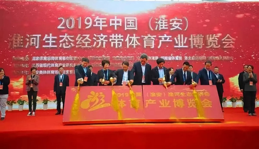 10月25日上午,由江苏省现代体育产业研究服务中心、江苏省体育产业集团、淮安市体育局共同主办的2019中国(淮安)淮河生态经济带体育产业博览会在淮安市体育中心开幕。国家体育总局体育器材装备中心副主任王平,江苏省体育局副局长王志光,淮安市委常委、宣传部长周毅,淮安市人民政府副市长王红红,江苏省体育产业集团董事长顾晔、总经理陆路、副总经理宗睿洁以及淮河生态经济带25个城市领导共同出席。